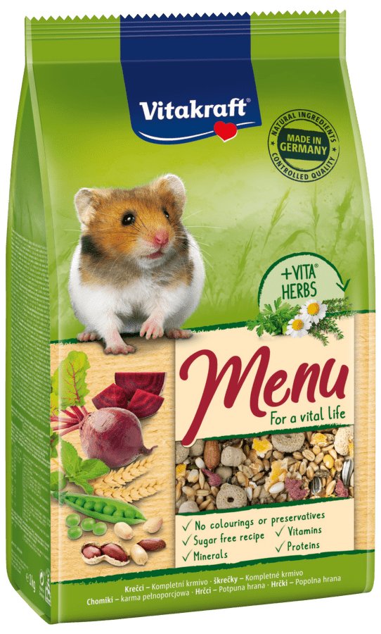 Kompletní krmivo pro křečky. Obsažený Vital-Komplex, kombinace vitamínů a minerálů, dodává Vašemu zvířeti další porci životní vitality.